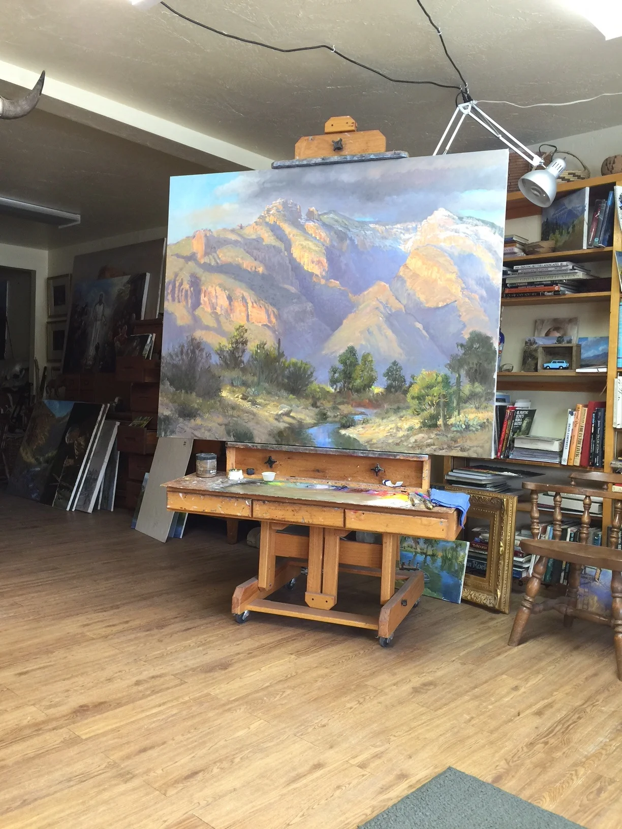 Finishing the Painting "Pusch Ridge-Santa Catalina Mountains in Tucson.